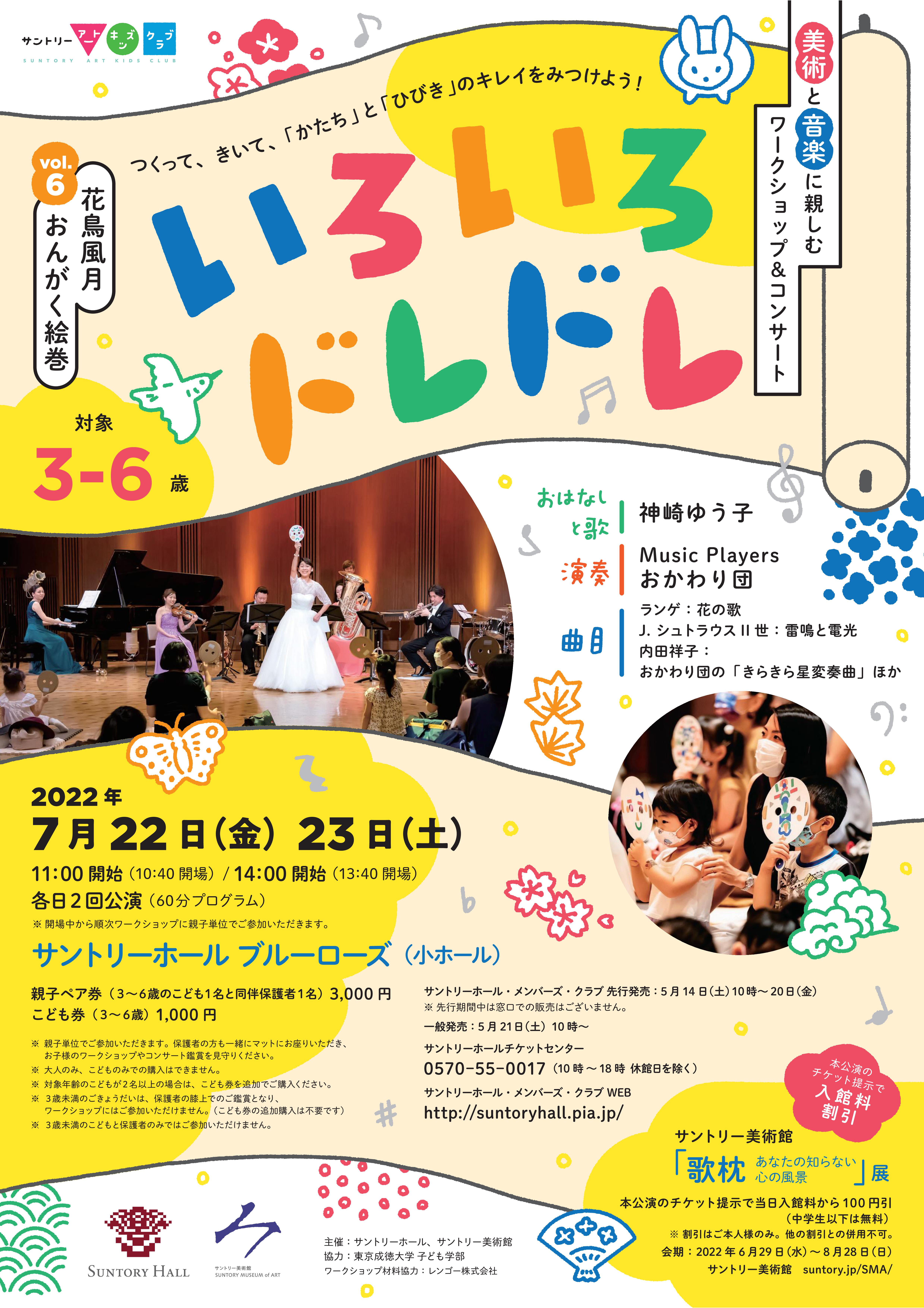 サントリーアートキッズクラブ主催(しゅさい)イベント) 【3~6歳(さい)対象(たいしょう)】 「いろいろドレドレ ―美術(びじゅつ)と音楽に親しむワークショップ& コンサート― vol. 6 花鳥風月おんがく絵巻(えまき)」※終了しました