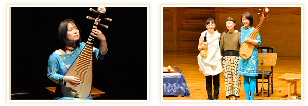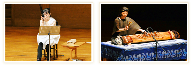 引き続き、実行委員会代表・三浦から、このコンサートは第3回ウィーン・フィル&サントリー音楽復興祈念賞の助成を受けて開催します、との挨拶からコンサートが始まりました。日中韓3カ国の伝統楽器の名手を招聘してのコンサートは、2月のニューヨークと、ワシントンDCの米国公演も、ニューヨークタイムス紙などに高い評価を得ており、福島での公演も広範囲な関心を集め、素晴らしい演奏でした。会場に集まった中国人、韓国人、そして日本人の聴衆は、それぞれの国の伝統曲に深く聴き入り、また米国人作曲家による委嘱新作を3名が合奏する姿に多民族文化の融合を感じとり、拍手を惜しみませんでした。