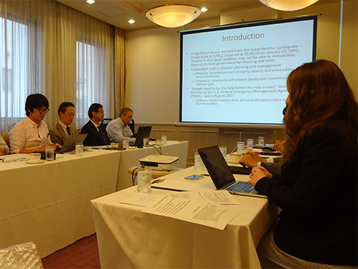 2017年10月7日、「グローバルな文脈での日本」の12回目のセミナー「災害からの復興」をホテルJALシティ仙台で開催した。最初の報告「東日本大震災後の復興」は東京大学先端科学技術研究センター教授の牧原出氏によって行われた。当時、東北大学教授として自身も仙台で震災を経験した牧原氏は、日本政府の復興への取り組みや、震災の際の地域社会の対応について説明し、3.11が政治や組織に与えた影響、社会の変化について語った。二人目の報告者はトロントのライアソン大学教授のリーピン・ファン氏で、「災害復興に向けた人的・制度的課題」と題する報告の中で、日本は3.11の前から強い防災の文化を育み、法律、政策、規制、意思決定システムにおいて先進的な災害リスク管理システムを築いてきたこと、そしてそれが共同体や個人の行動にどのように影響しているかについて語った。