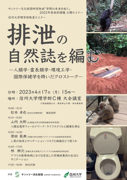 排泄の自然誌を編む:ヒト・チンパンジー・ニホンザルの排泄行動の比較から始めるSDGs