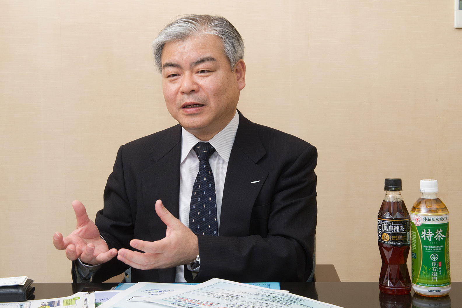 長年にわたる特茶の開発には、多くの社員が関わっています。原点であるポリフェノール研究から、新素材の探索、トクホ申請、商品化までの長い道のりを、関係者の目線から語ってもらいました。