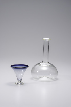 瓶底が中央に向かってせり上がった瓶。江戸後期~明治前期にかけての加賀屋の引札に同形の瓶がみられ、「燗瓶」と書かれている。直火で酒をお燗するための酒器である。弱火であれば耐熱ガラスでなくとも可能とのことだが、実際に燗用に使われたかは判然としない。(『和ガラス 粋なうつわ、遊びのかたち』、サントリー美術館、2010年)