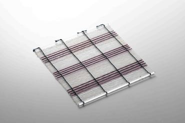ねじり棒、中空などの棒を取り合わせたガラス製の簾は、大きさも多々あり、刺身を盛るための料理用の敷物や、筆巻きなど、使い手の意図に合わせて、幾つかの用途に応用されたと推測される。加賀屋の引札(江戸後期~明治中期)にも継続的に登場する。(『和ガラス 粋なうつわ、遊びのかたち』、サントリー美術館、2010年)