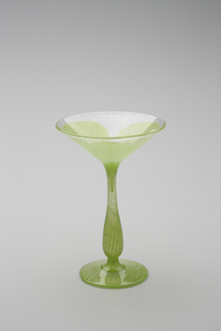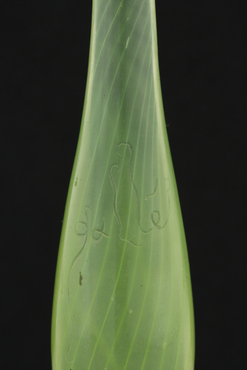ガレは、象徴主義的で幻想的なガラス作品を作りつつ、一方では実用的な食器類も作っていた。1870-80年代のものは、特に透明ガラスにエナメル彩色を施したものが多かったが、1900年頃はガラス素地に工夫を凝らした酒器を手がけている。(『オルセー美術館特別協力 生誕170周年 エミール・ガレ』サントリー美術館、2016年)