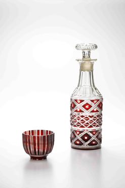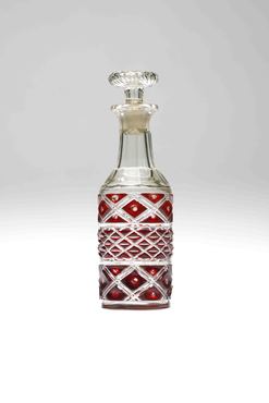薩摩切子は幕末のわずかな期間、薩摩藩で作られたカットガラス。第27代島津斉興が製薬事業を開始する際、強い薬品に耐えうるガラス瓶の製造に乗り出したのが始まりで、第28代斉彬が殖産事業として推進し、切子として美術品の域にまで高めた。無色透明ガラスに色ガラスを被せる被せガラスが特徴で、カットによって2色のコントラストを浮かびあがらせる。中でもこのような透明の紅色ガラスは、嘉永4年(1851)に日本で初めて薩摩藩が発色に成功した。(『サントリー美術館プレミアム・セレクション 新たなる美を求めて』サントリー美術館、2018年)