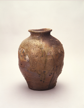 信楽焼特有の赤茶色の肌は全面に長石の白い粒が吹き出し、白く焼け残った部分も見られます。降りかかった灰は溶けて自然釉となり、一部は滝のように白く流れ落ちています。このように土と炎が偶然に作り出した多くの景色は、見る者を飽きさせません。 本作は内部に稲の籾が残っていることから、種籾を保存する「種壺」として伝わったものと思われます。おそらく数百年にもわたって人間の生活とともにあったのでしょう。そうした日用品の壺に美を見出すようになったのは、ごく最近のことです。それでも本作の多彩な表情に心を奪われてしまうのは、あるがままの姿を美しいと感じる、日本人独特の自然観に重なり合うからなのかもしれません。(『リニューアル・オープン記念展Ⅱ 日本美術の裏の裏』、サントリー美術館、2020年)