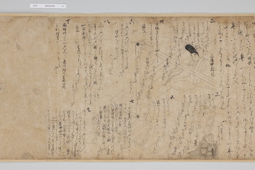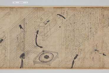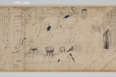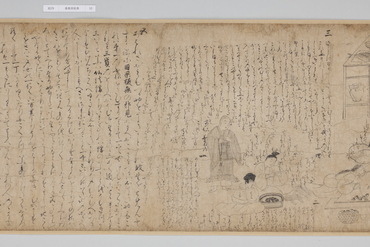 善教房という僧侶がある貴族の館を訪れ、家の者たちに仏の教えを説くさまを描く。独立した詞書はなく、ストーリーは絵の中に書き込まれた登場人物の台詞によって展開する。特に屋敷の使用人たちはいずれもしたたかで、あれこれ言い返されてしまう善教房の姿が笑いを誘う。内容は宗教色が濃いが、画風は親しみやすい素朴な白描。問答が繰り広げられる室内描写や使用人の仕事ぶりにリアリティがあり、その姿に共感する庶民が教化対象だったと考えられる。(『サントリー美術館プレミアム・セレクション 新たなる美を求めて』サントリー美術館、2018年)