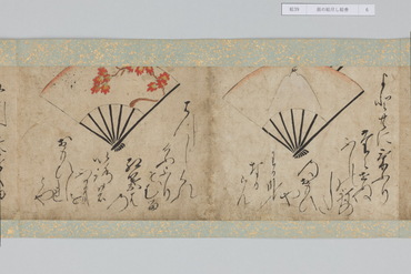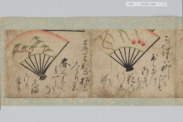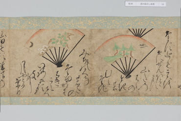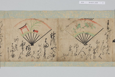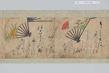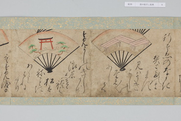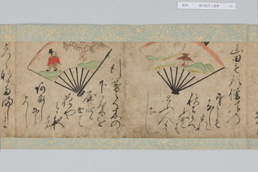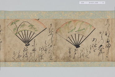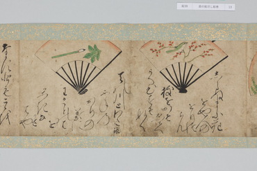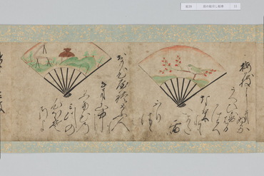 本作は和歌にもとづく扇面画と、その絵の元になった和歌が周囲に記される「扇の草子」と呼ばれる作品群の一作例である。「扇の草子」は扇面画を見て和歌を当てるという遊びを源流とする絵画形式で、視覚的な印象を伴って和歌を享受することのできる媒体として、十七世紀前後という限られた期間に制作されていた。和歌は勅撰集や物語、説話集、お伽草子、仮名草子、謡曲、狂言、はては出典不明のものまでをも含む、多種多様な文学か引用されており、絵は限られたモチーフで和歌の情景を象徴的に表わしたものと、和歌に詠まれる景物を即物的に描いたものに大別される。本作においては、主要モチーフのみを厳選し、筆数を省いたさらりとした描写であり、扇面に対して歌の文字も伸びやかで大きい。そのため絵、歌ともに、内容が的確に伝わるようになっている。また、判じ絵や奇妙な絵はなく、伝統的な歌絵から継承された絵様が目立つのが特徴である。さらに収録された和歌には、ほとんどの伝本にある『伊勢物語』の歌が一首もなく、逆に他には見られない『住吉物語』の歌が二首あることが特徴として指摘されている。「扇の草子」の重要性は、柳橋水車図や武蔵野図といった、近世初期の大画面形式の絵画の原型となったとみられる図が含まれている点にある。すなわち、武蔵野や宇治が歌枕として和歌に詠まれ続けるうち、「扇の草子」に取り込まれて小画面で絵画化されるようになり、そこで最低限のモチーフによって和歌を象徴的に表わす型が確立すると、やがて屏風などの大画面形式に移されていったという経緯が想定されているのである。こうしたことから「扇の草子」に描かれた絵は、当時どのような和歌イメージが蓄積しているかを知ることができるものとして貴重なものであり、そこには宇治や武蔵野の他にも多くの歌枕が含まれていることは注目されてよいだろう。(『歌枕 あなたの知らない心の風景』、サントリー美術館、2022年)
