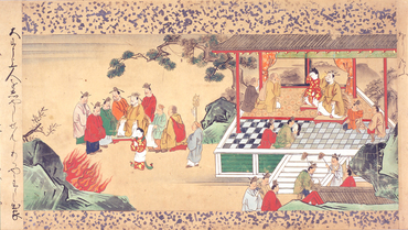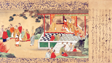 御伽草子における本地物は、仏菩薩や神の元の姿や前世を描いたもので、本作は熊野権現が天竺から垂迹した由来を描いた絵巻。「熊野の縁起」とも呼ばれている。摩伽陀国の千さい王は後嗣がなく、千人の妃を入れたが、やがて五衰殿の女御が懐妊する。九百九十九人の妃たちはこれを妬み、女御を殺害しようとはかるが、女御は臨終に際し神仏に祈請して山中で王子を生む。その後この山に住む上人が王子を見つけて育て、七歳になった時に王のもとを訪れ、すべてが明らかになる。王と王子、生き返った女御は日本に渡り、熊野の神となった。本作品の内容は安居院の『神道集』巻二の「熊野権現事」と題する同社の本地譚に最も近く、画風は伝統的な大和絵の手法によっているが、室町時代の絵巻によく見られる傾向として、稚拙な表現も見受けられる。詞と絵を交互に配する段落式で、全体の構成はバーク財団本に近いものと考えられる。(『絵巻小宇宙―絵の中に生きる人々―』、サントリー美術館、2000年)