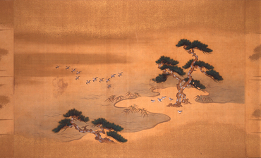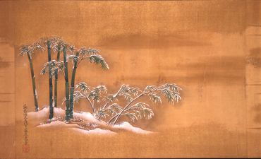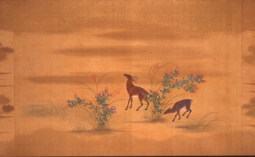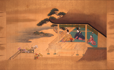 月ごとの歌一首とその歌意を表わした彩色画一図を一組ずつまとめた月次歌絵。上巻は子の日の小松引きに始まり、山桜、卯花、苗代、時鳥、常夏に至る春から夏にかけての景物、下巻は秋草に鹿、重陽の宴、小鷹狩、紅葉、千鳥、雪笹の秋から冬にかけての景物が主題とされている。それらさまざまの行事や動植物がやまと絵の伝統に根ざした細やかな筆致で描かれ、余白の広さや全体各所に刷かれた金の霞は和歌の情趣と巧みに共鳴し合っている。各巻末に「畫所預正五位下藤原光芳」の署名と、白文方印「光芳之印」が捺され、絵は土佐光芳(1700-1772)の筆になるものとわかる。和歌は右大臣・近衛内前を初め、久我通兄、冷泉為村といった公家により詠まれたもので、「千代」「千歳」などの長寿を祝う吉祥句が詠み込まれている。本作は仙台藩主・伊達家の旧蔵品で、第五代藩主であった伊達吉村(1680-1752)の七十歳の慶賀に、吉村の子で第六代藩主となった伊達宗村(1718-1756)が贈ったものである。