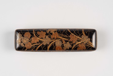 隅丸長方形、被蓋造。蓋には塵居と玉縁をつけ、両側に刳形を設ける。身の両側面には菊紋をあしらった銅製鍍金の紐金具を打つ。蓋表から蓋両側面にかけて芒に一茎の八重菊を重ねて描く。小さな露は空中に散るように描かれている。総体黒漆地で、金平蒔絵と絵梨地を主体に文様を描き、菊の花や葉の一部に高蒔絵を交えている。(『NHK大河ドラマ特別展 天地人―直江兼続とその時代―』サントリー美術館ほか、2009年)