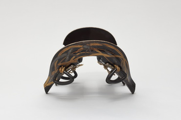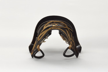 前輪と後輪の外側には、向って左から右にかけて穂を付けた一茎の芒を弓形に大胆に描き、その中央に丸々とした一匹の蜘蛛を配している。蜘蛛は、日本では古来、待ち人が来る前兆や吉祥の前兆として尊ばれた。芒は黒漆地に金・銀の平蒔絵と金貝で描き、蜘蛛は金の金貝と赤金の付描で表わす。前輪・城輪の周縁と居木の先端には粗く割った鮑を張詰め、華やかさを添える。居木の裏面には墨書きの花押と、朱漆名があるが残念ながら判読できない。芒の大胆な構図は、狩野永徳筆という下絵が添い豊臣秀吉所要と伝える「葦穂蒔絵鞍」(重要文化財 東京国立博物館蔵)に類似し、製作年代や作者に近い関係が推定されている。(『KAZARI 日本美の情熱』サントリー美術館ほか、2008年)