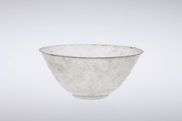 型吹き・半透明なガラスの鉢。本来は無色透明であったが、風化による白濁がみられる。口縁部は吹き放したのち研磨して仕上げている。江戸期特有の鉛ガラスで比重は3.53である。(『サントリー美術館所蔵 ガラスの精華』、サントリー美術館、1993年)