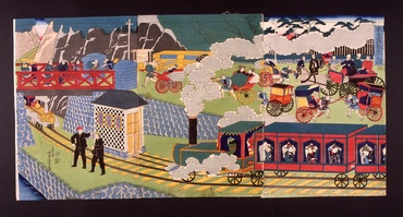 鉄道開業新橋夜景図