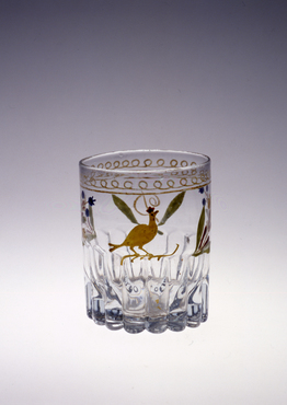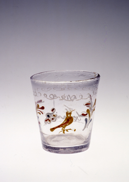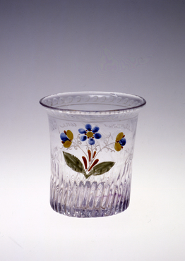 エナメル彩花文乳白コップ