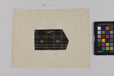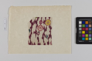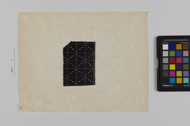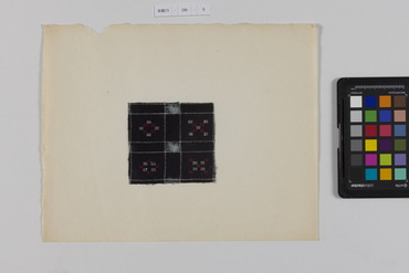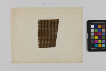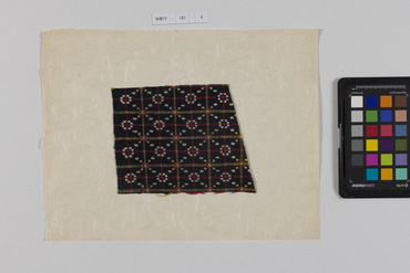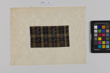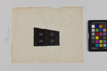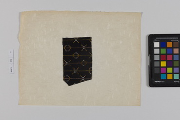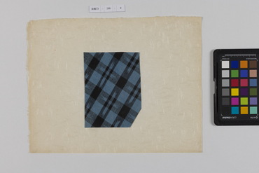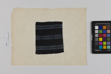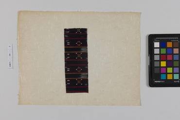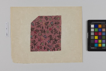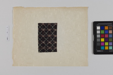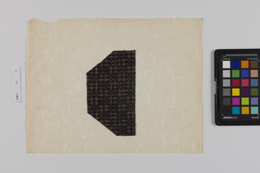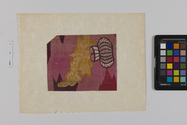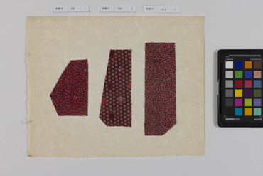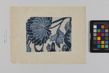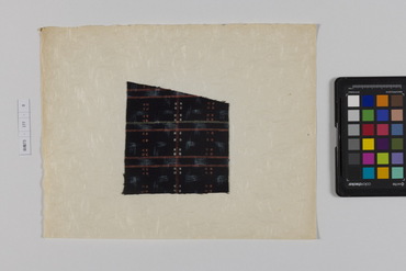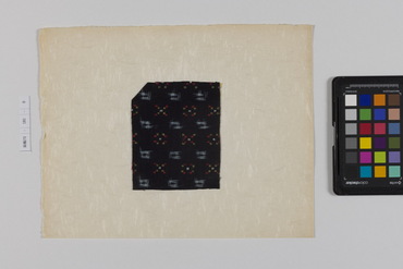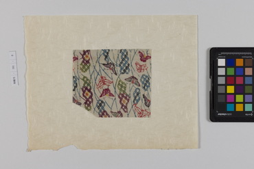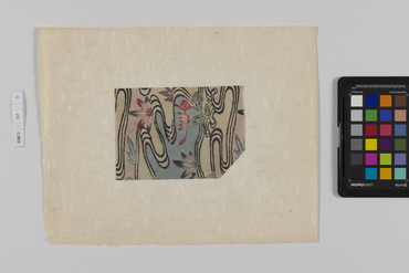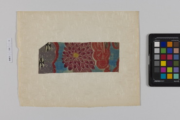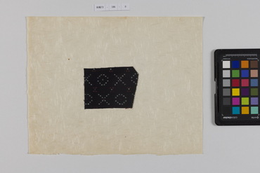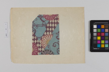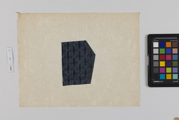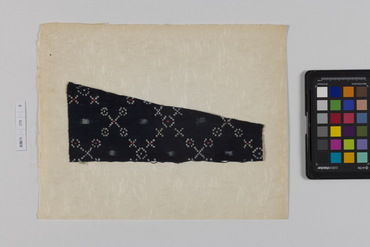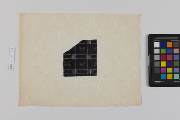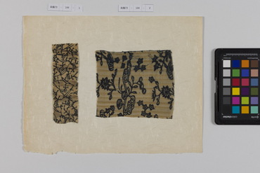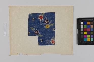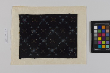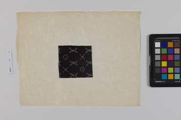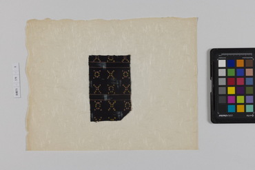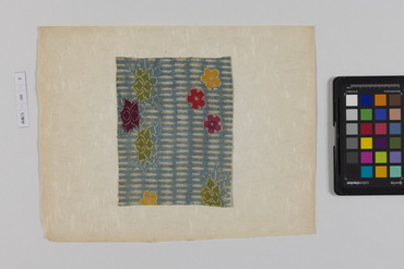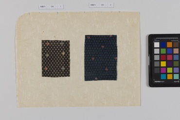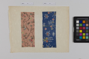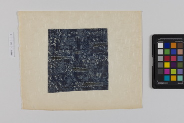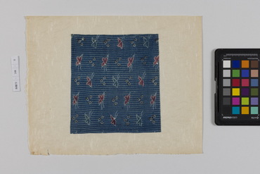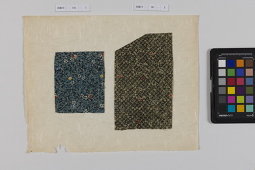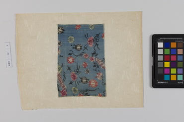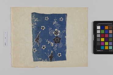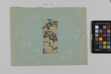 桐板浅地鶴燕菊梅松葉模様藍型裂