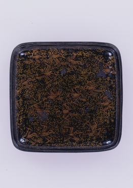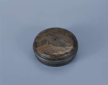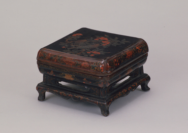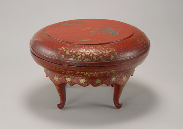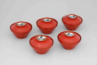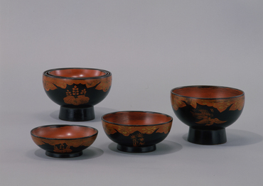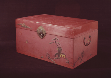 朱漆山水人物箔絵重箱