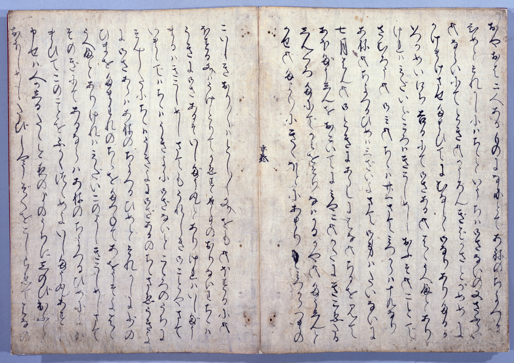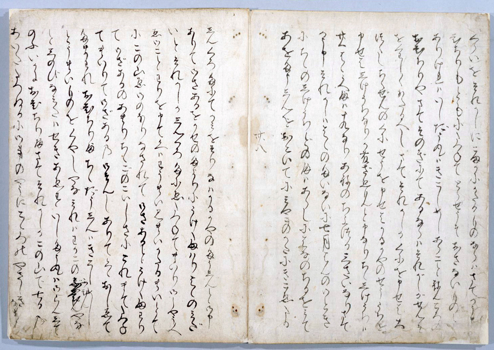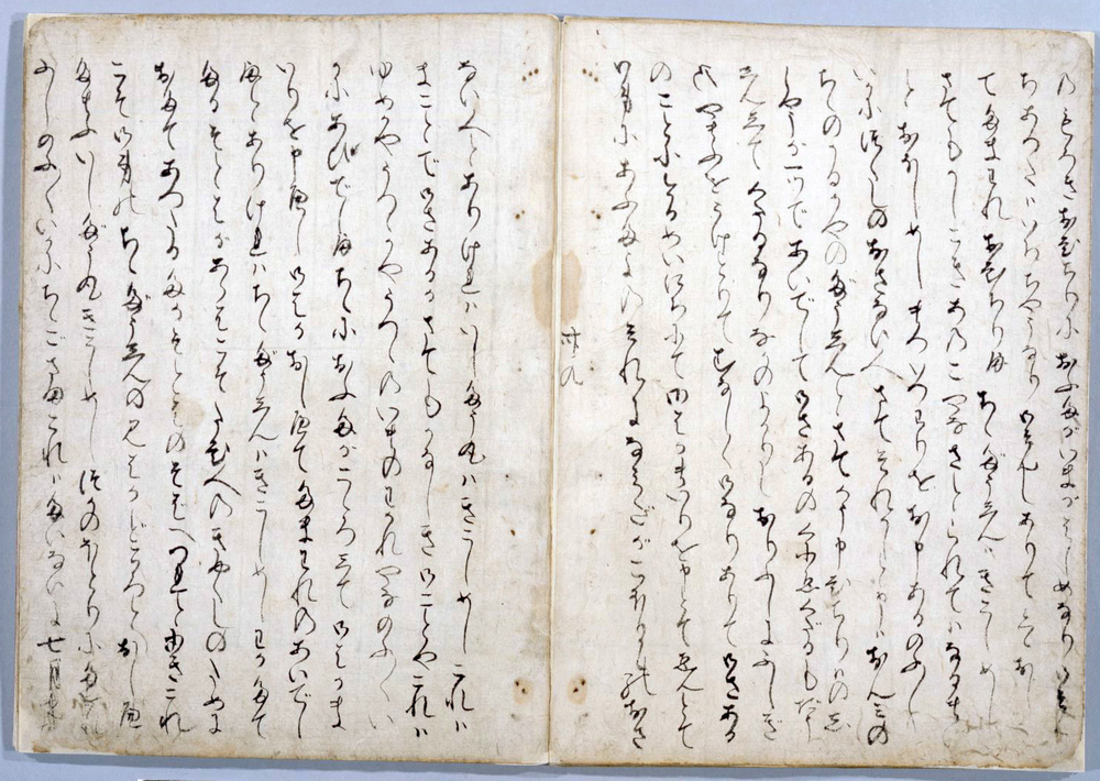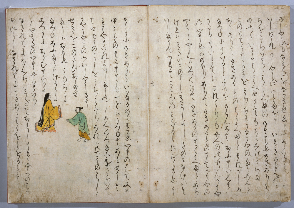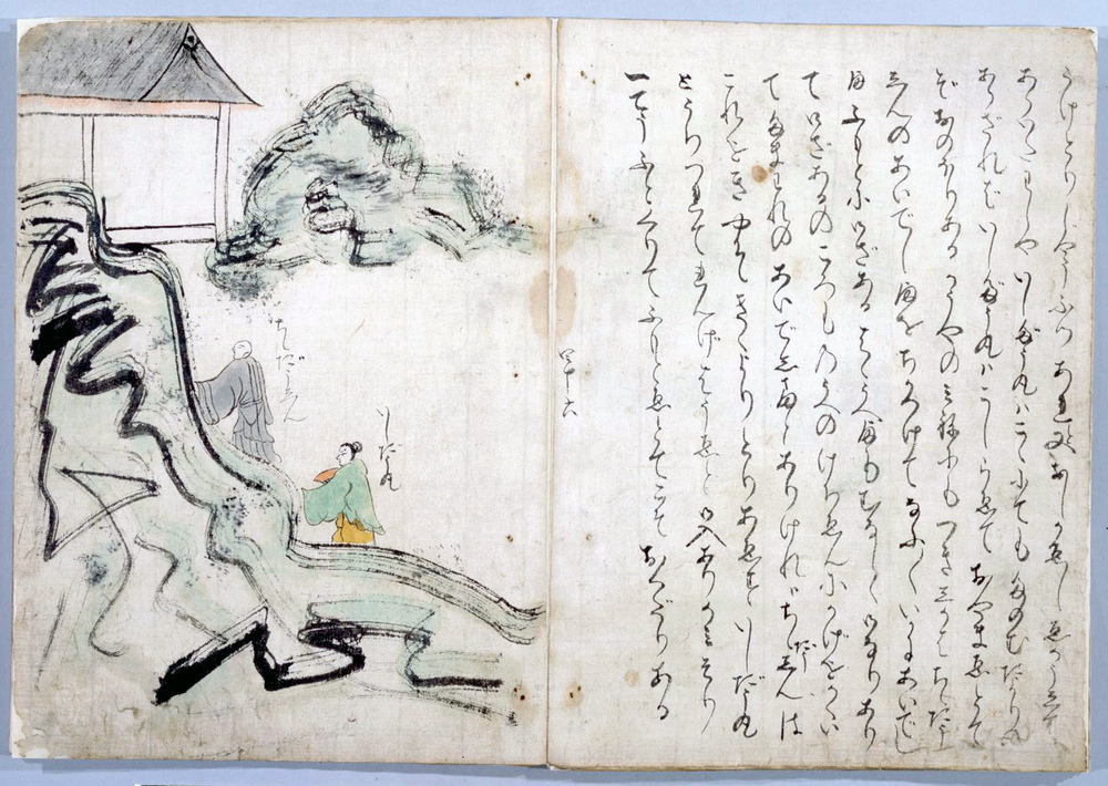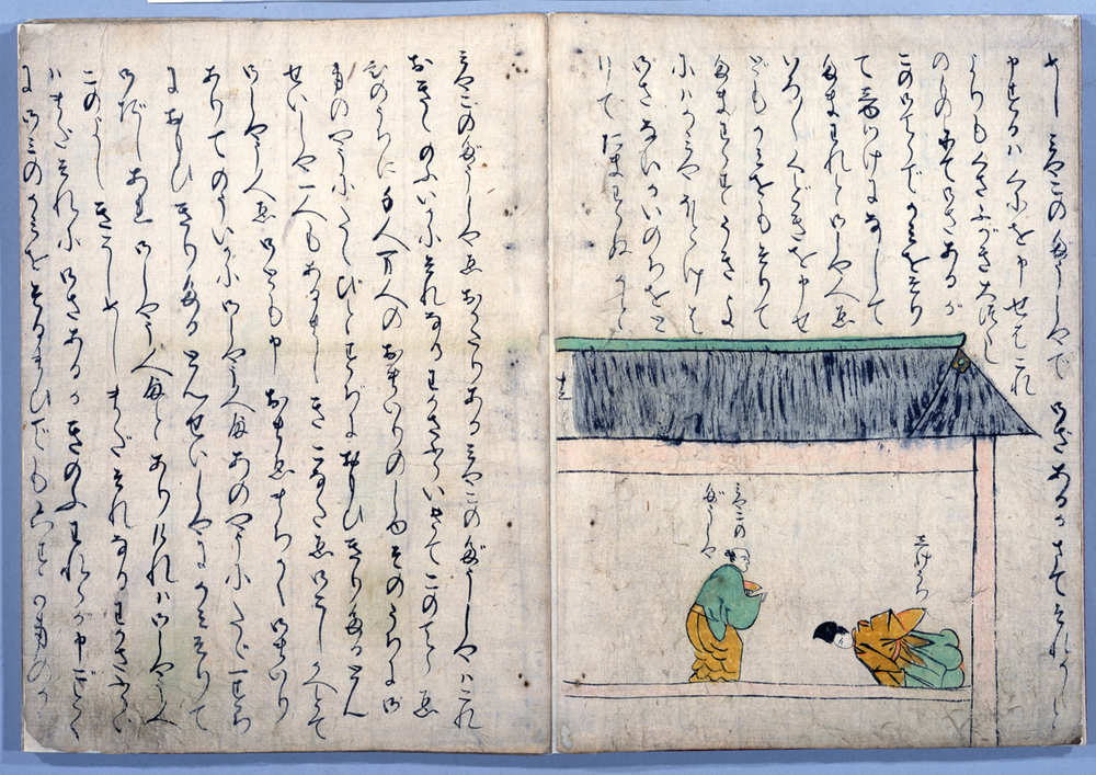 説経「苅萱」の絵入本。絵画化された説経として現存最古のものと推定される。世の無常を感じた加藤重氏は、妻子を残して出家し苅萱道心と名乗る。やがて、息子が父をたずねて高野山へ入るが、道心は父と明かさずに息子を突き放し、一人信濃善光寺に移って往生をとげた。高野山で出家した息子も同日同刻に息を引き取ったという。本文と同筆とみられる絵は、素朴絵の極致と評される。奔放でありながら信仰心に支えられたその表現は、見る者を魅了してやまない。(『サントリー美術館プレミアム・セレクション 新たなる美を求めて』サントリー美術館、2018年)