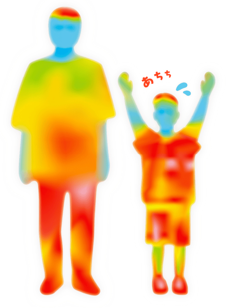 こどもは自分の体調をうまく表現できないことも多いため、普段から近くにいる親御さんが様子を注意深く観察することが大切です。体に熱がこもっていることを見分ける指標の一つは「顔が赤くなっているか」。これは未熟な発汗能力を補うため、頭部や胴体の皮膚に血液を多く集める特性から起こります。