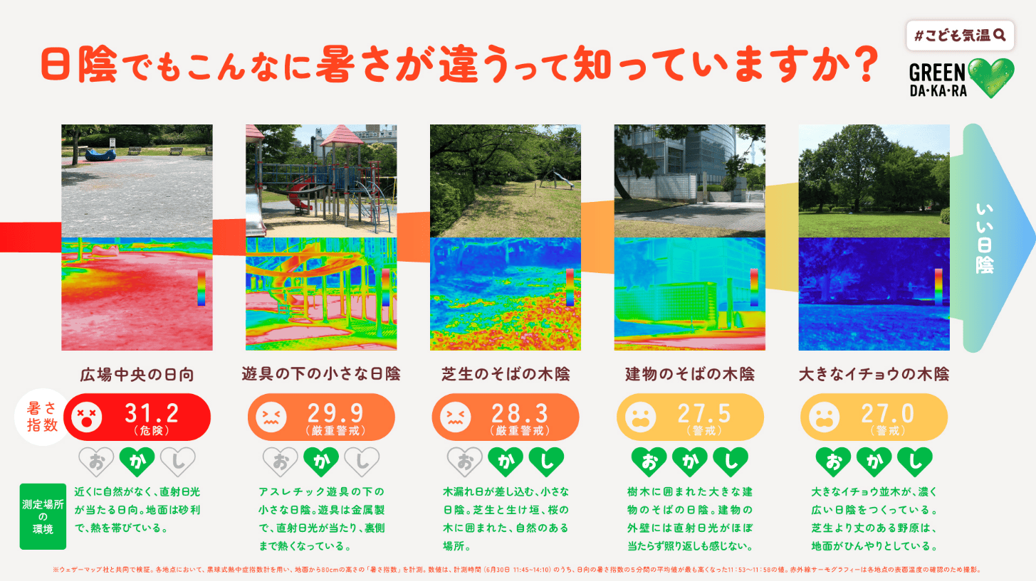 こどもたちの遊び場である公園内のさまざまな「日陰」の暑さ指数(WBGT)を、
