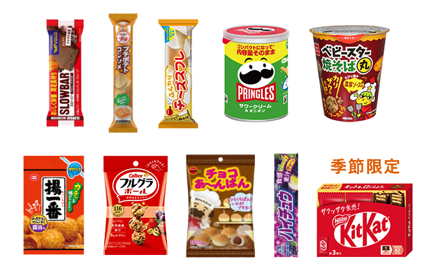 お菓子はもちろん、パンやカップラーメンなどの売れ筋商品をご用意!