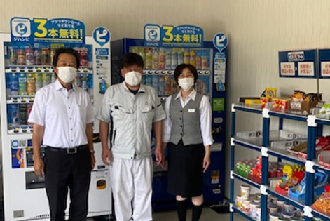 ボスマートの在庫は、サービス担当者がオンラインで在庫状況を確認のうえ、飲料自販機の補充と同じタイミングでご訪問・補充いたします。