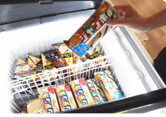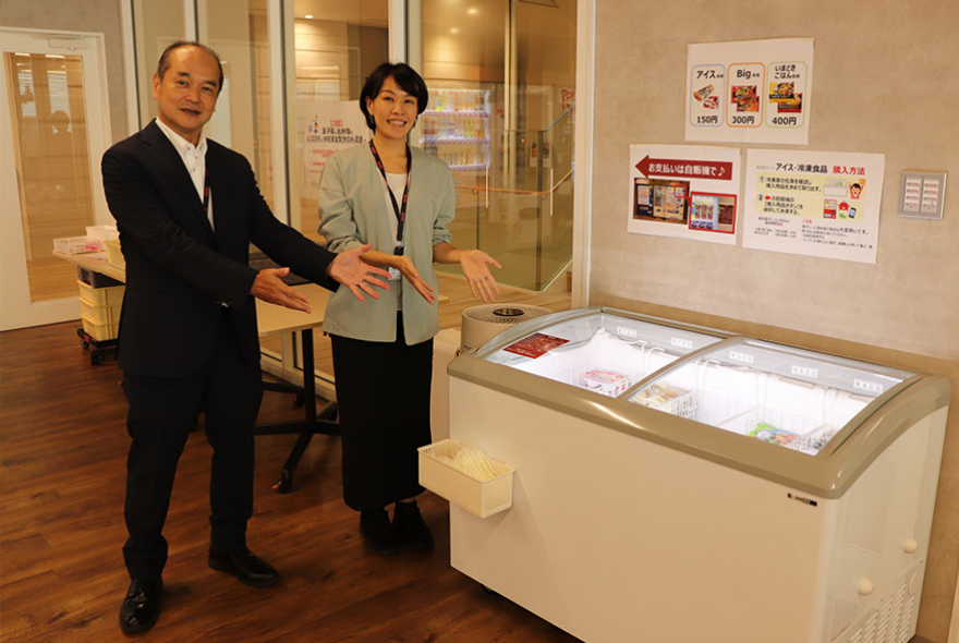 福利厚生の充実と、社員になるべく健康的な食事を提供したいという思いから、導入を決めました。仕出し弁当と併用し、冷凍食品は野菜が多く摂れるラインナップを中心にセッティングしています。価格帯も300円~400円とお手頃で、多くの社員が利用しています。アイスも休憩時間のお供として仕事の合間のリフレッシュとなっています。
