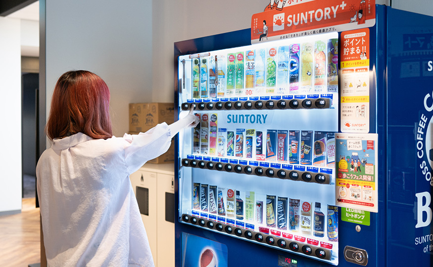 サービスを知ったきっかけは、サントリーの営業担当者からの紹介でした。今のオフィスに移転した際、自販機の導入でお世話になったご縁から、サントリープラスの導入も支援いただきました。