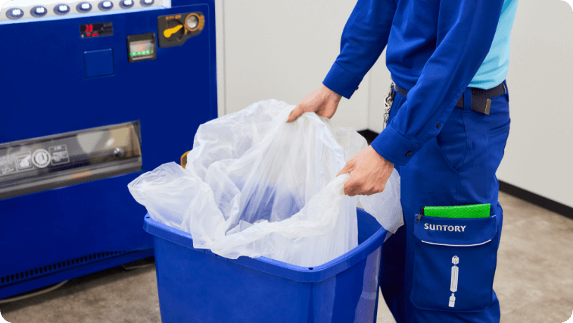 当社専門スタッフが商品補充から空容器回収まで、自販機に関わるすべての業務を行います。