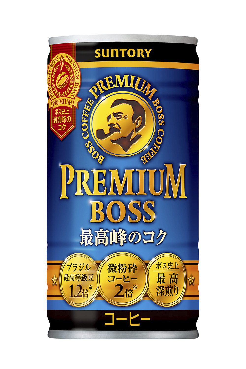 「プレミアムボス」は、高級豆を中心としたブレンド豆を瞬間凍結してコクを凝縮した後、極限まで細かく挽いた「微粉砕コーヒー豆」を絶妙にブレンドすることで、コーヒー由来の強いコクを実現したスタンダードタイプの缶コーヒーです。