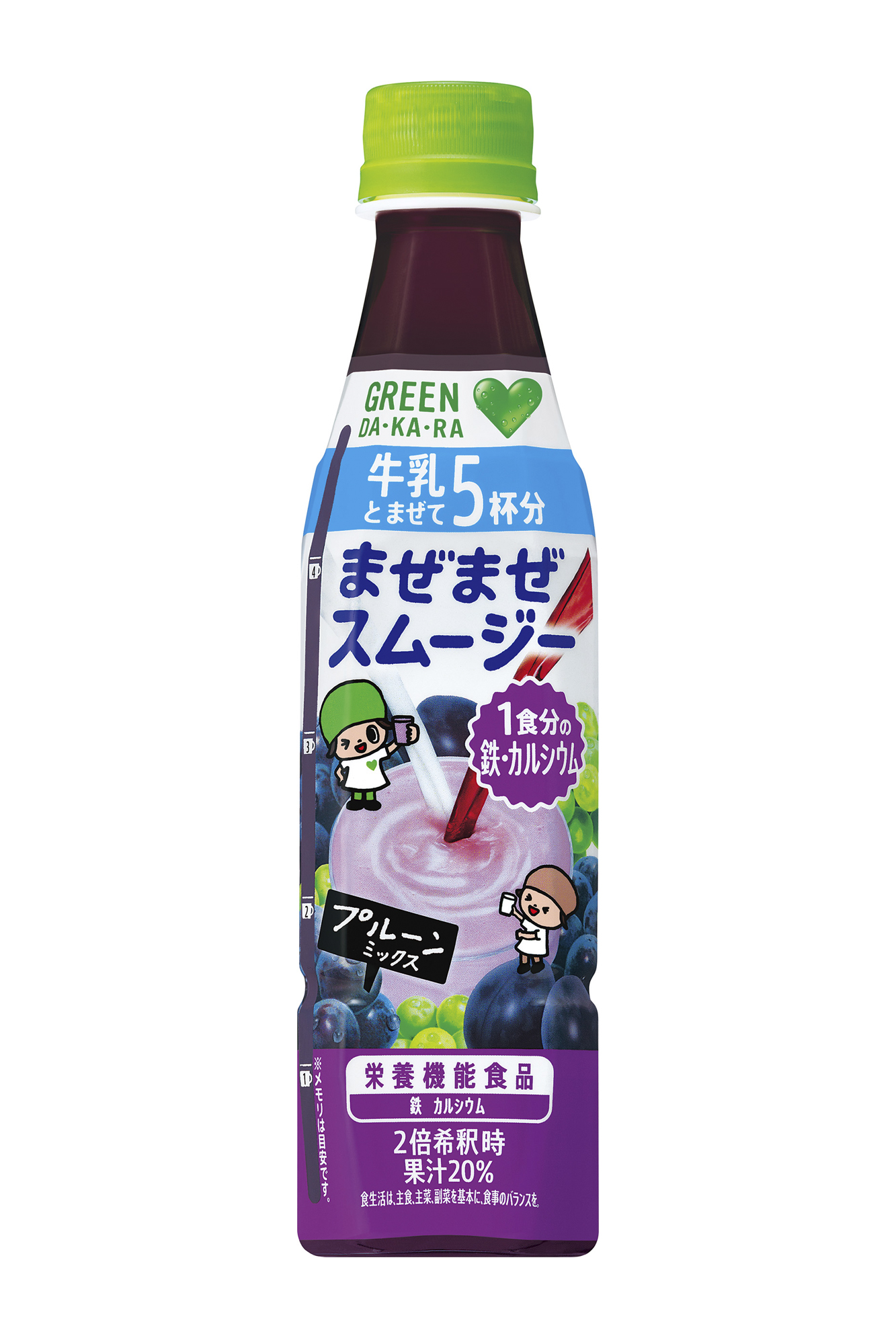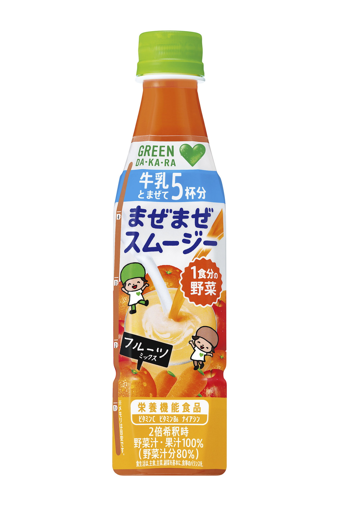 そんなママたちの、朝の救世主となるかもしれないのが「GREEN DA・KA・RA まぜまぜスムージー350ml フルーツミックス」、「同 プルーンミックス」。牛乳と混ぜるだけで手軽につくることができる栄養機能食品(※1)です。