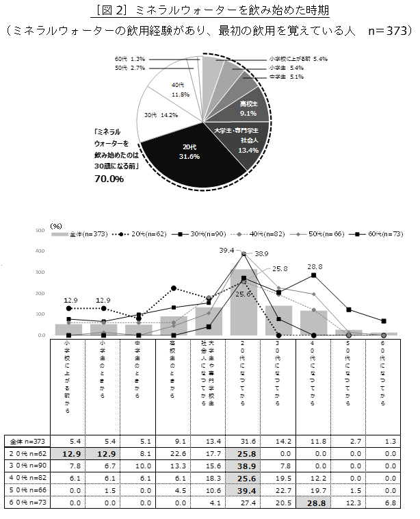 ミネラルウォーターを飲み始めた時期は「20代」が最多 |