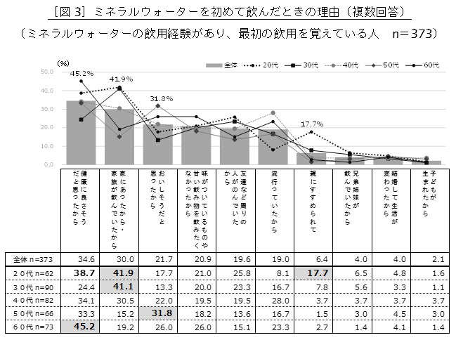 ― 40~60代がミネラルウォーターを初めて飲んだ理由は、「健康に良さそうと思ったから」が最多 ―
