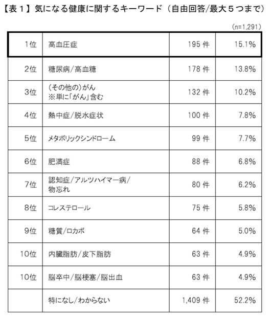 気になる健康ワードは高血圧や糖尿病などの生活習慣病が上位に。