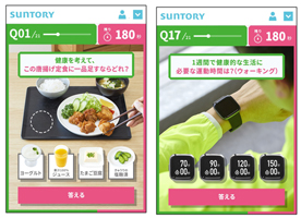 「健康を考えて、この唐揚げ定食に一品足すならどれ?」や「1週間で健康的な生活に必要な運動時間は?(ウォーキング)」など、日常生活の場面を切り出し、食事・運動・生活に関する問題を出題致します。