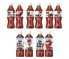 4年目となる今年は、広島東洋カープの現役選手の名言を記した数量限定ボトルを5月に発売しました。今回はその第2弾として、525mlボトルにはアドゥワ 誠選手、西川 龍馬選手、田中 広輔選手の名言各1種、計3種類を、600mlボトルには大瀬良 大地選手、石原 慶幸選手の名言各1種、計2種類を記したボトルを発売します。