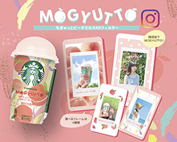 “ももがぎゅっと”でMOGYUTTO!ピーチがぎゅっと詰まったパステルな世界を切り取ろう!をテーマに、スターバックス チルドカップオリジナルInstagram ARフィルターが登場します。