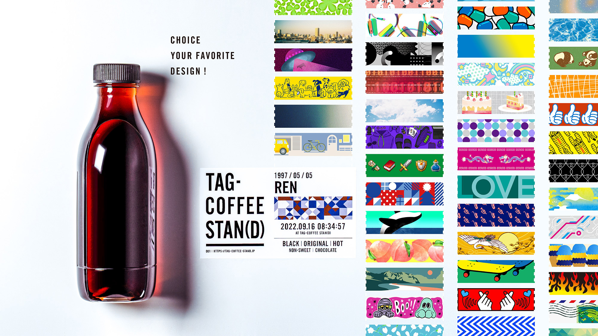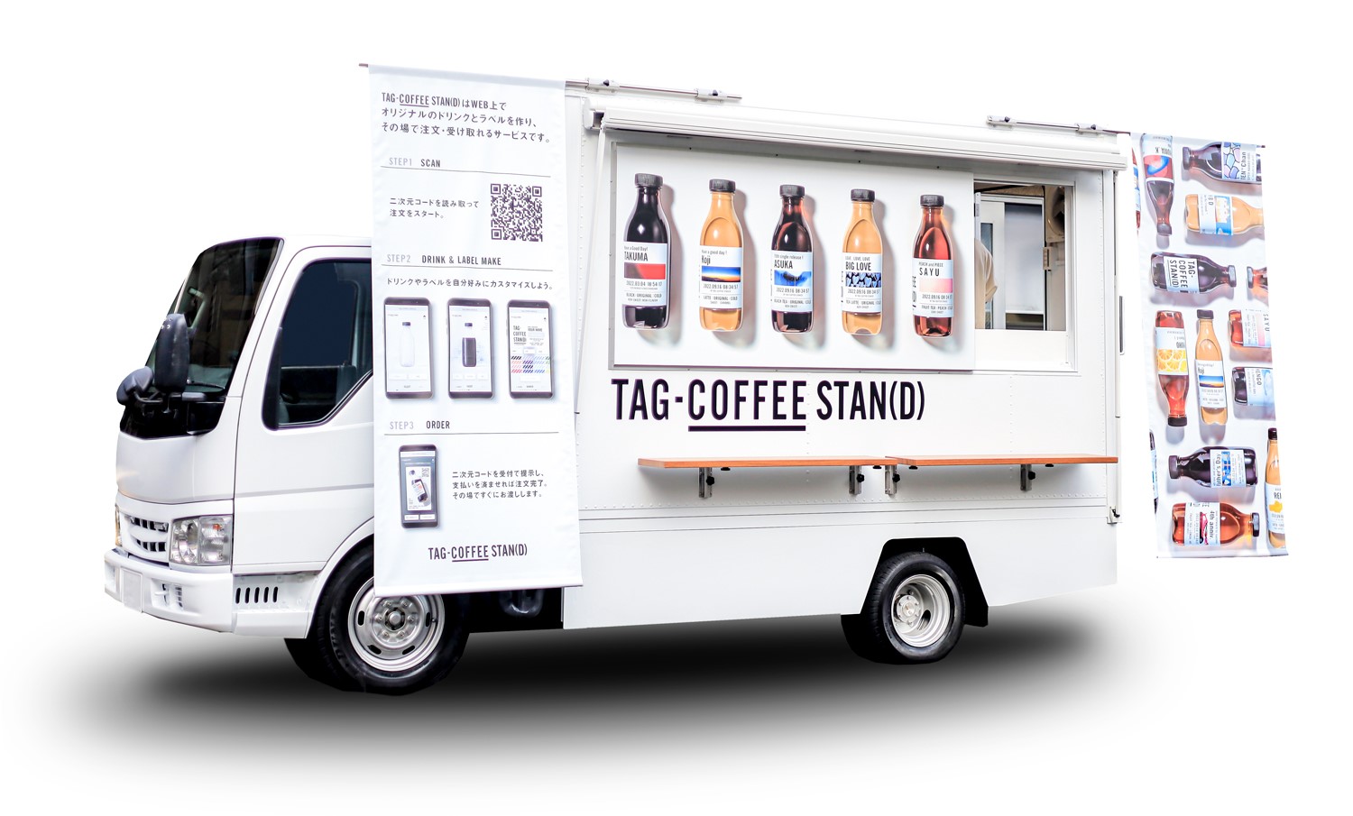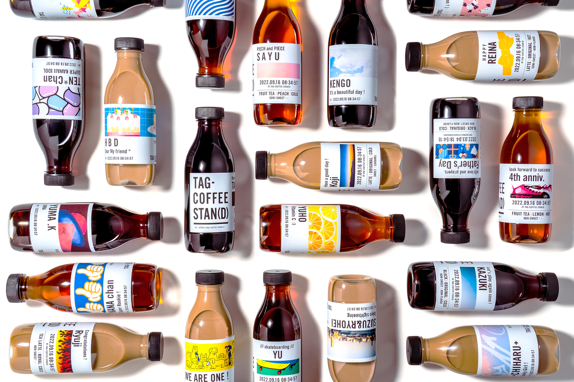 「TAG COFFEE STAN(D)」は、その日の気分に合わせて自分好みのコーヒーの味わいにカスタマイズできるほか、ラベルのデザインも3,000種類以上の豊富なバナーデザインから選択でき、名前やメッセージなども自由に入力できます。場所を選ばず、屋外や屋内といったさまざまなシーンでコーヒーを楽しんでいただくため、持ち運びに適した再栓可能なボトルで提供します。“自分らしさ”を持ち運べるボトルスタイルのコーヒースタンドです。
