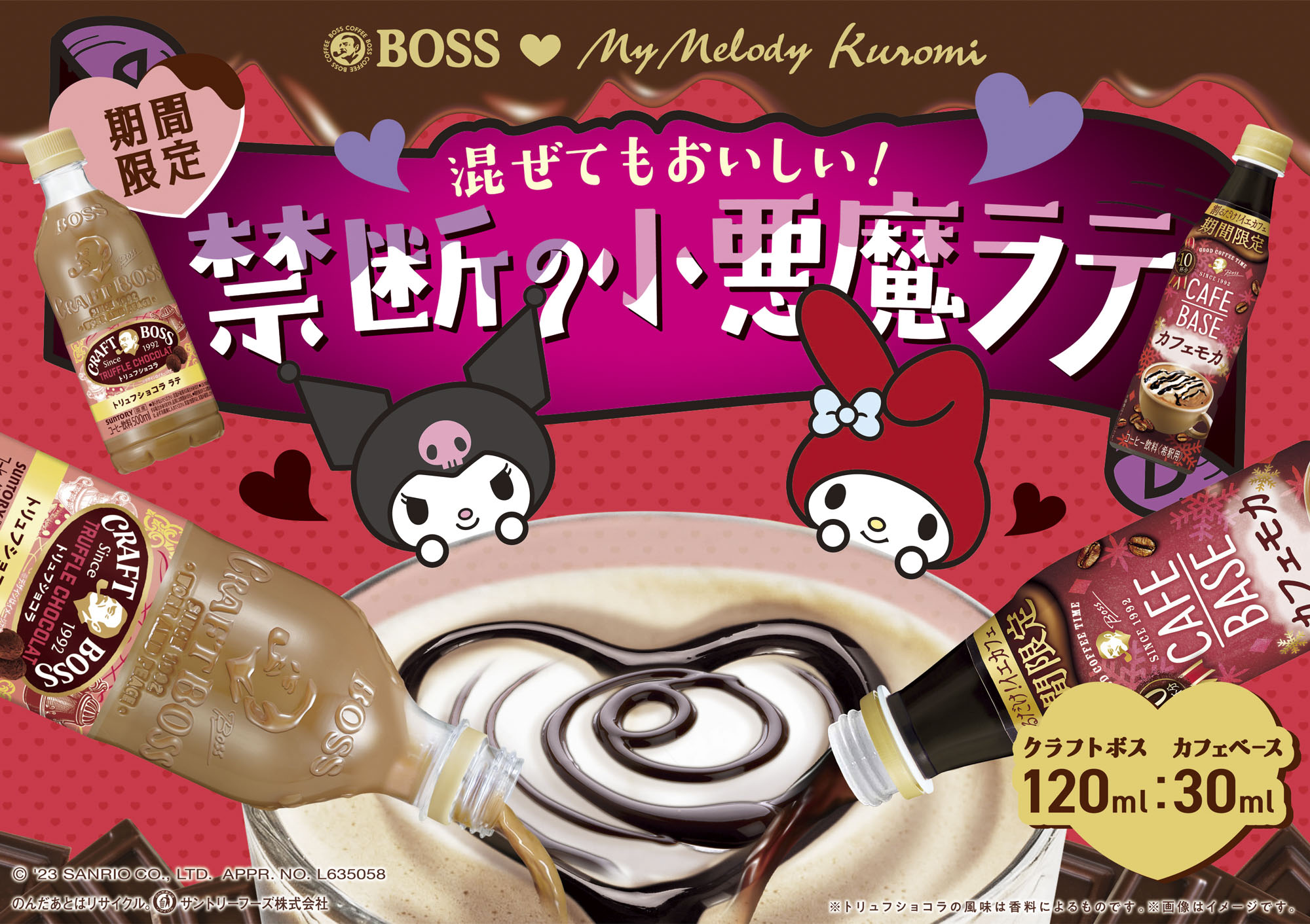 同日発売の2商品を使用して、カフェで味わうようなトッピングを楽しんでいただけるように、「クラフトボス トリュフショコララテ」に「カフェベース カフェモカ」を混ぜて作る「禁断の小悪魔ラテ」を含む「マイメロディ」「クロミ」のおすすめバレンタインレシピをカフェベース公式インスタグラムや店頭で訴求します。
