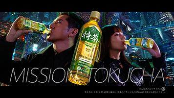 舞台は近未来の都市。本木雅弘さんと川口春奈さんの二人が演じるエージェントは、極秘ミッション「ミッション:体脂肪を減らせ。」を与えられ、ミッション遂行のために、颯爽と走り出す本木さんとバイクにまたがり勢いよくエンジンをかける川口春奈さんはそれぞれで指定場所に向かう。指定場所に合流し、六角形の発光体を投げ渡す川口さんと、華麗にキャッチする本木さん。本木さんが受け取った六角形の発光体の正体は、「ケルセチンゴールド※1」だった。そして、「体脂肪を減らす」には「体脂肪をエネルギーに変えて減らす」ことが重要であり、その鍵となるのが「ケルセチンゴールド※1」であることが明らかとなった。極秘ミッションを終えた二人は「特茶」を飲みながら次なるミッションへ。