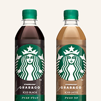 スターバックス GRAB&GOは、「一日中、快適に寄り添う、スターバックス」をコンセプトにした、いつでもどこでも気軽に楽しめる500mlペットボトル入りコーヒー飲料です。「アイスド ブラック」は、スターバックスこだわりの深煎りコーヒーのコクとすっきりとした後味で、飲みやすくも満足感のある味わいに仕上げました。また「アイスド ラテ」は、深めにローストしたコーヒーをベースに、ミルクの優しい甘さを調和させた飲み心地のよい味わいが特長です。