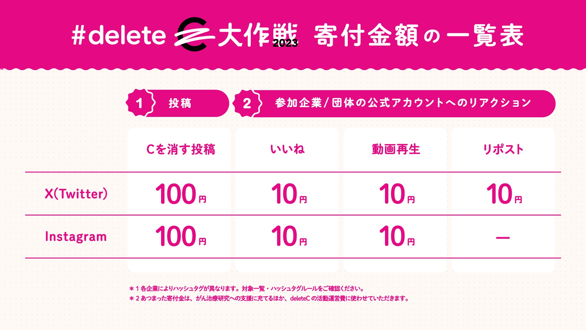 ●SNS投稿が寄付になる「#deleteC大作戦」の内容
