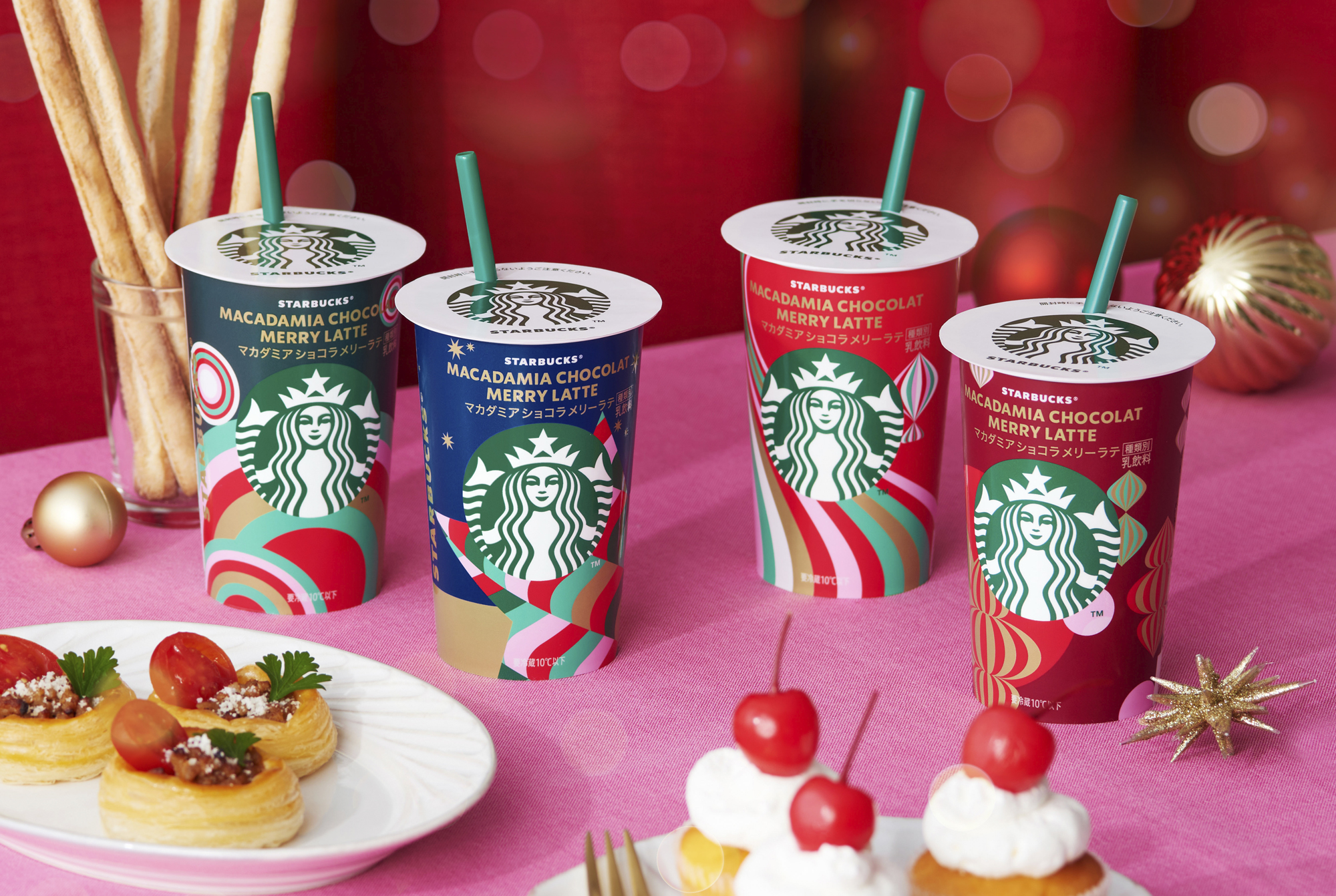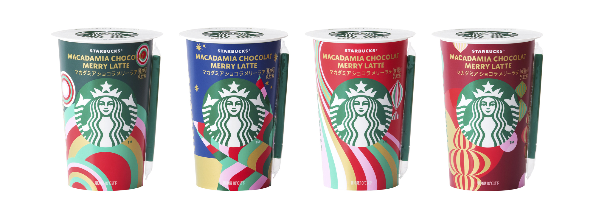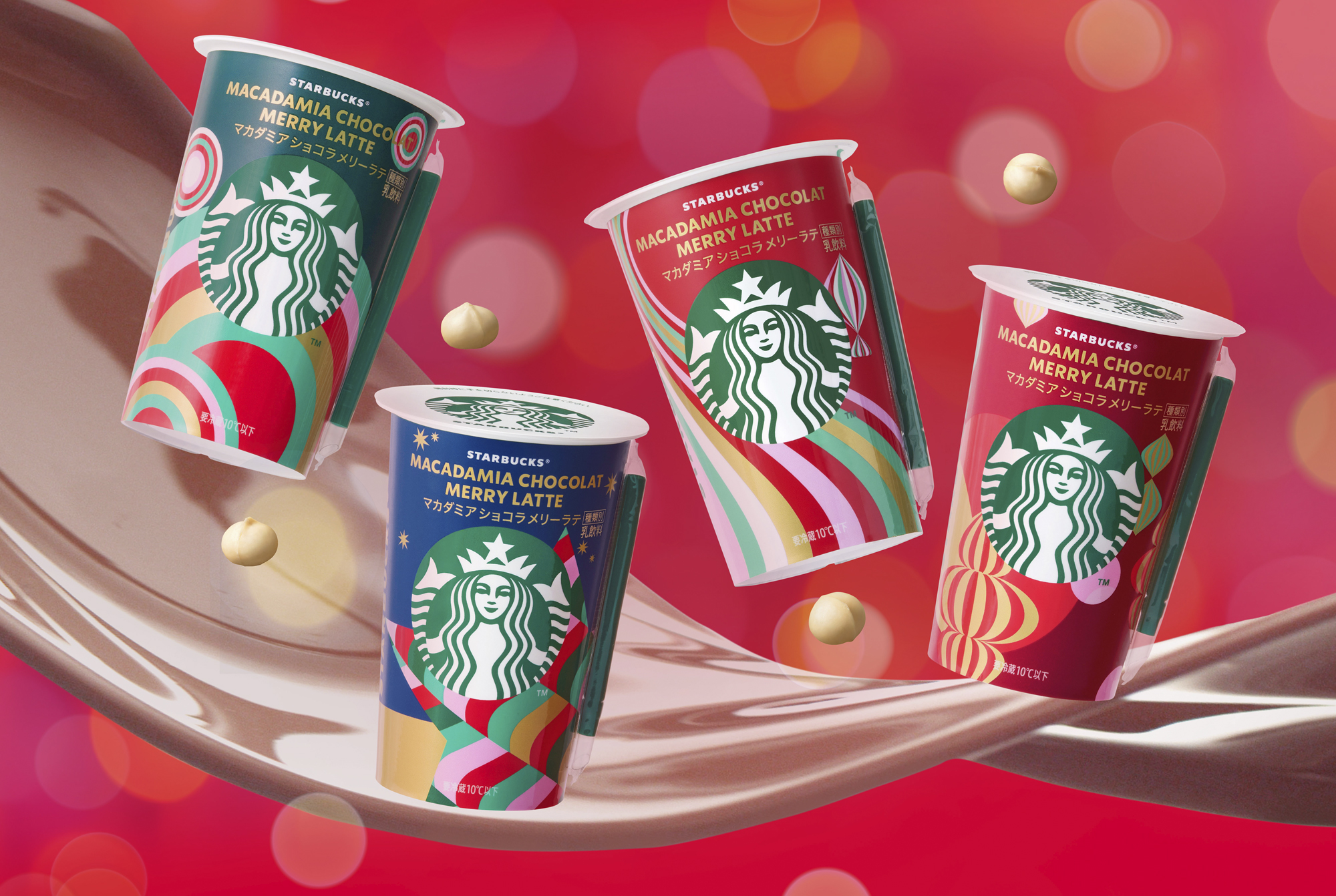 スターバックス チルドカップシリーズでは、毎年ホリデーシーズン※限定商品を発売しご好評をいただいています。今年は、「もっと、楽しもう。それぞれのホリデーを。」をテーマに、ワクワクするホリデーシーズンにぴったりな甘く濃厚な味わいの「スターバックス マカダミア ショコラ メリーラテ」を、4種類の心弾むパッケージデザインと共に展開します。ドリンクの贅沢な味わいをお楽しみいただけるのはもちろん、ホリデーシーズンで増えるパーティーでのさまざまなスイーツやフードとも相性が良いドリンクで、気分をより一層盛り上げます。