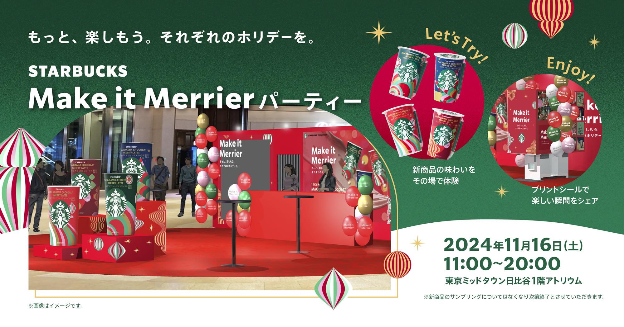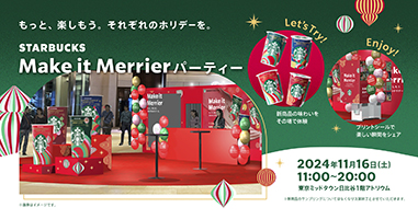 「スターバックス マカダミア ショコラ メリーラテ」発売を記念して、東京ミッドタウン日比谷 アトリウムにて、ポップアップイベント「もっと、楽しもう。それぞれのホリデーを。STARBUCKS Make it Merrier パーティー」を11月16日(土)に開催します。