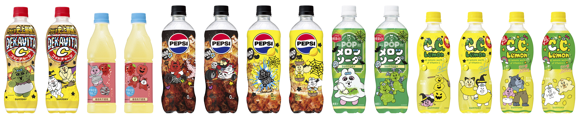 サントリー食品インターナショナル(株)は、イラストレーター・可哀想に!さんの人気作品である『おぱんちゅうさぎ』『んぽちゃむ』とコラボレーションした、「C.C.レモン」「超すっぱ C.C.レモン」「デカビタC ゴッドチャージ」「POPメロンソーダ」「ペプシ〈生〉 BIG ZERO」「ペプシ〈生〉 BIG ZERO LEMON」「なっちゃん りんご」のハロウィン仕様の描き下ろしオリジナルパッケージデザインボトル全14種を、9月下旬より数量限定で発売します。