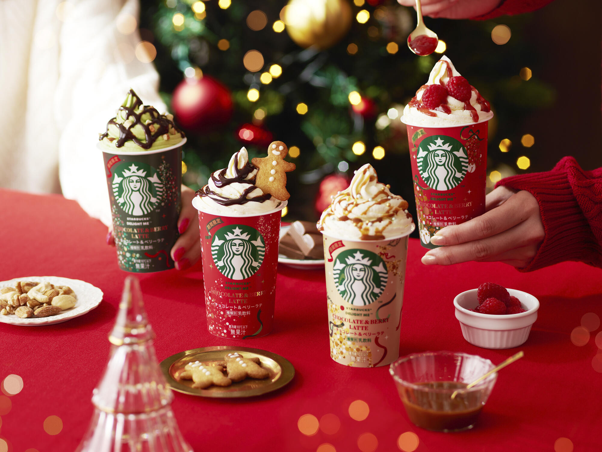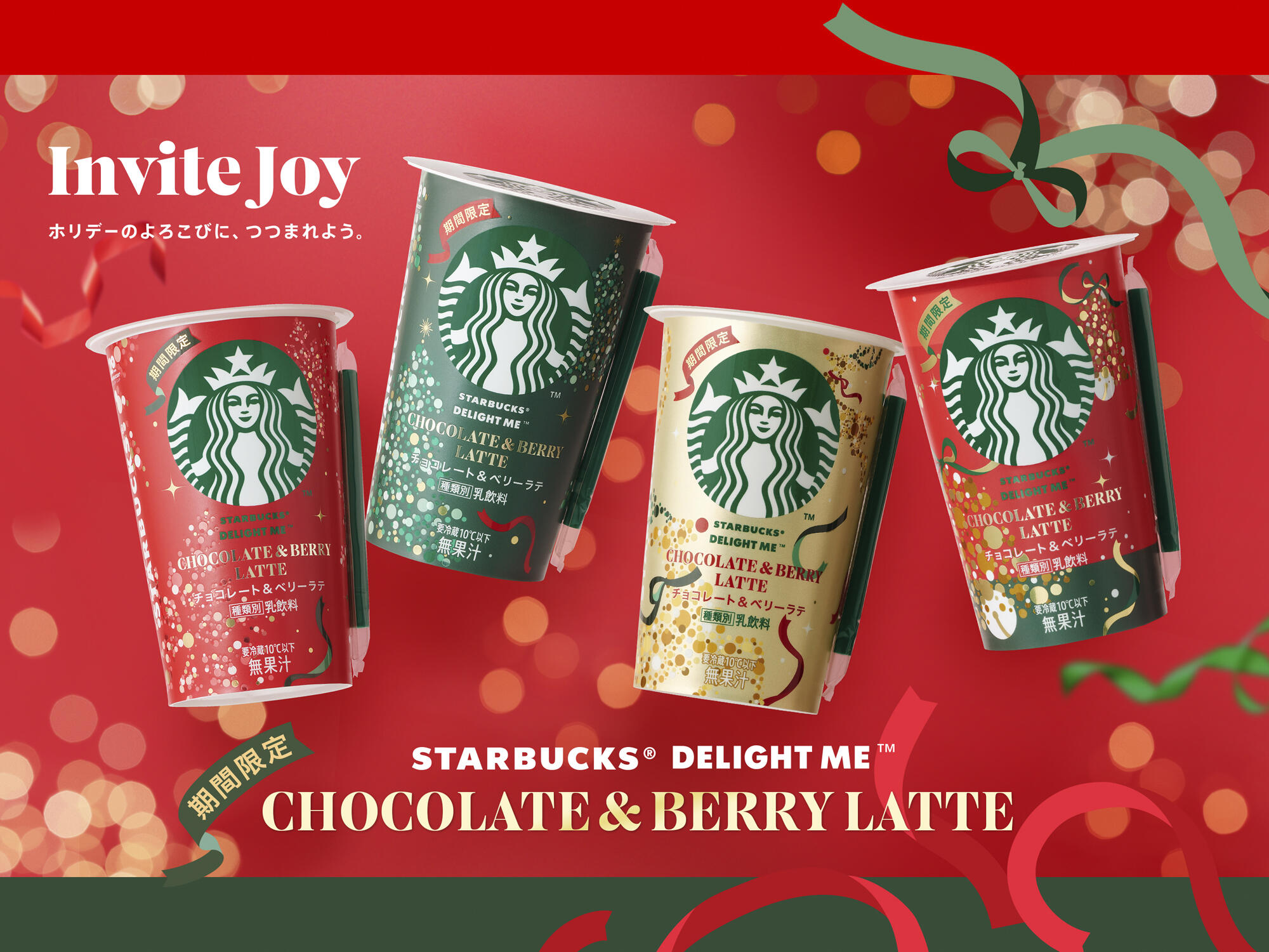 今年は「Invite Joy -ホリデーのよろこびに、つつまれよう-」をテーマに、「スターバックス DELIGHT ME チョコレート&ベリーラテ」を、4種類のきらめくパッケージデザインで展開します。季節に合わせた味わいに、スターバックスならではの新しさやワクワク感、驚きを加えたシリーズ「スターバックス DELIGHT ME」の第2弾で、ホリデーを彩る魔法がかけられたような“DELIGHTなひととき”をお届けします。
