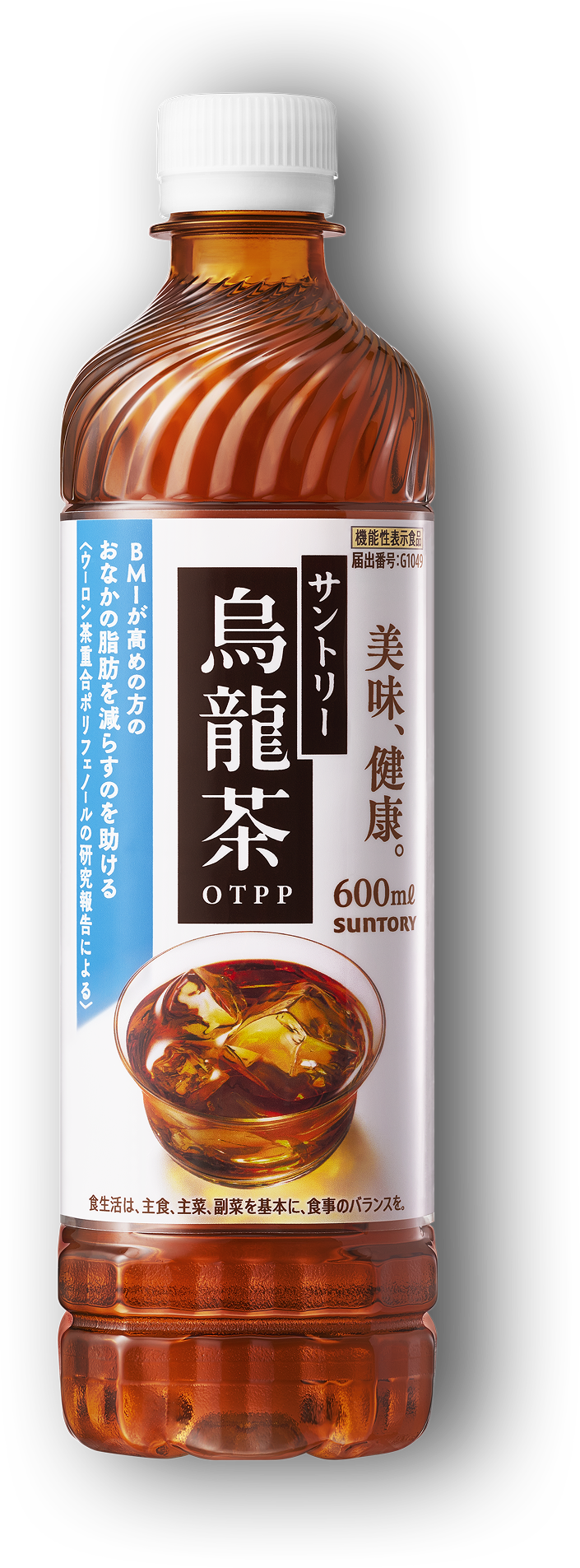 ウーロン茶は、茶葉を「半発酵」させるという独特のつくり方をしており、その過程で茶葉に含まれるカテキン類が結合(=重合)し、ウーロン茶に特有のポリフェノールが生まれます。これこそが「ウーロン茶重合ポリフェノール」と呼ばれるもので、濃くてさっぱりとした味わいをつくると同時に、単体のカテキンにはなかった別の機能性を発揮します。「ウーロン茶重合ポリフェノール」を食事の際に継続摂取することにより、BMIが高めの方のおなかの脂肪を減らすことが報告されています。