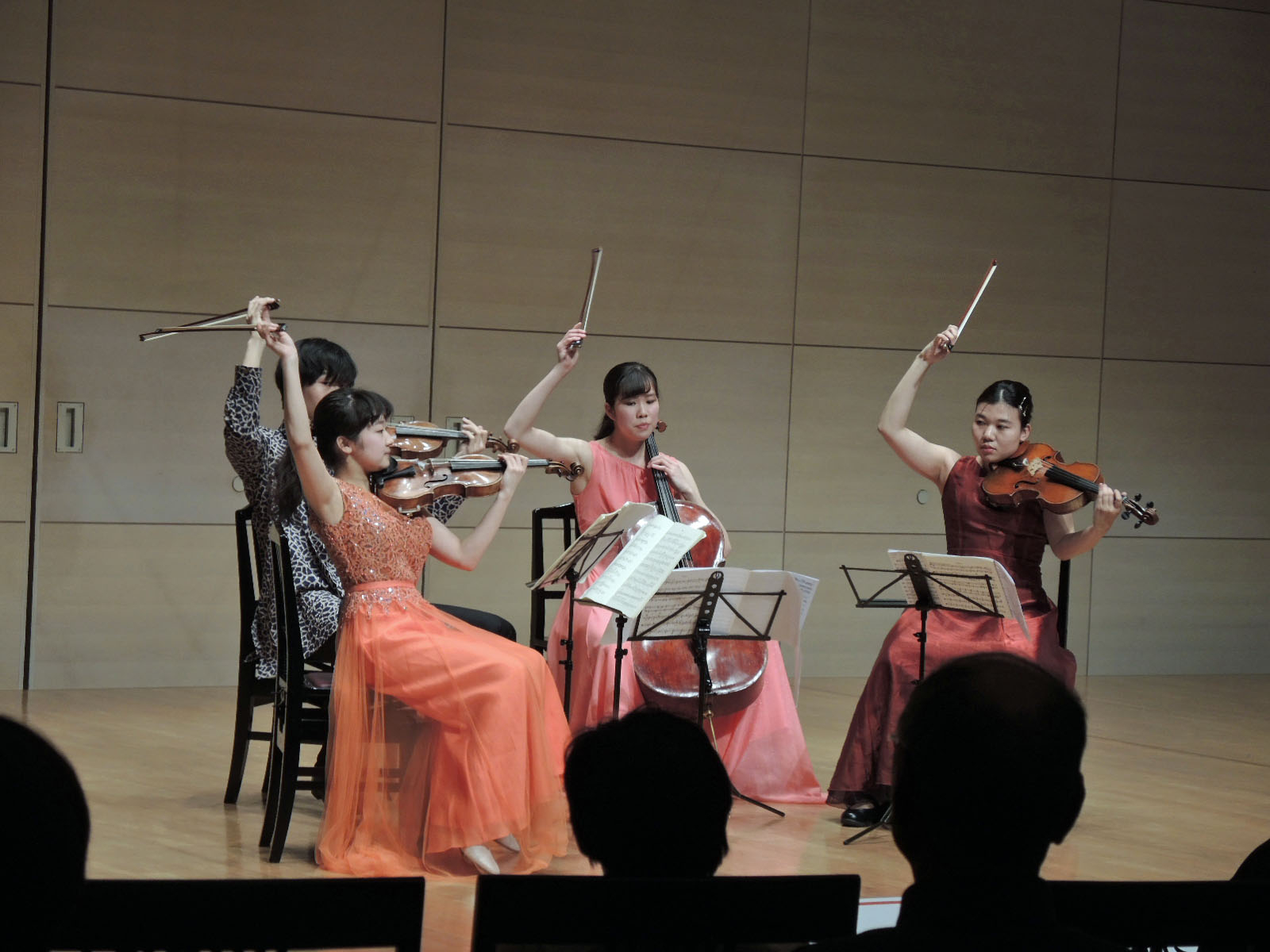 室内楽アカデミーで学ぶクァルテット・インテグラが、4月28日に行われた「秋吉台音楽コンクール」において、第1位および山口県知事賞(グランプリ)、ベートーヴェン賞を獲得しました。同じくアカデミー受講生のチェルカトーレ弦楽四重奏団は、第3位を受賞しました。