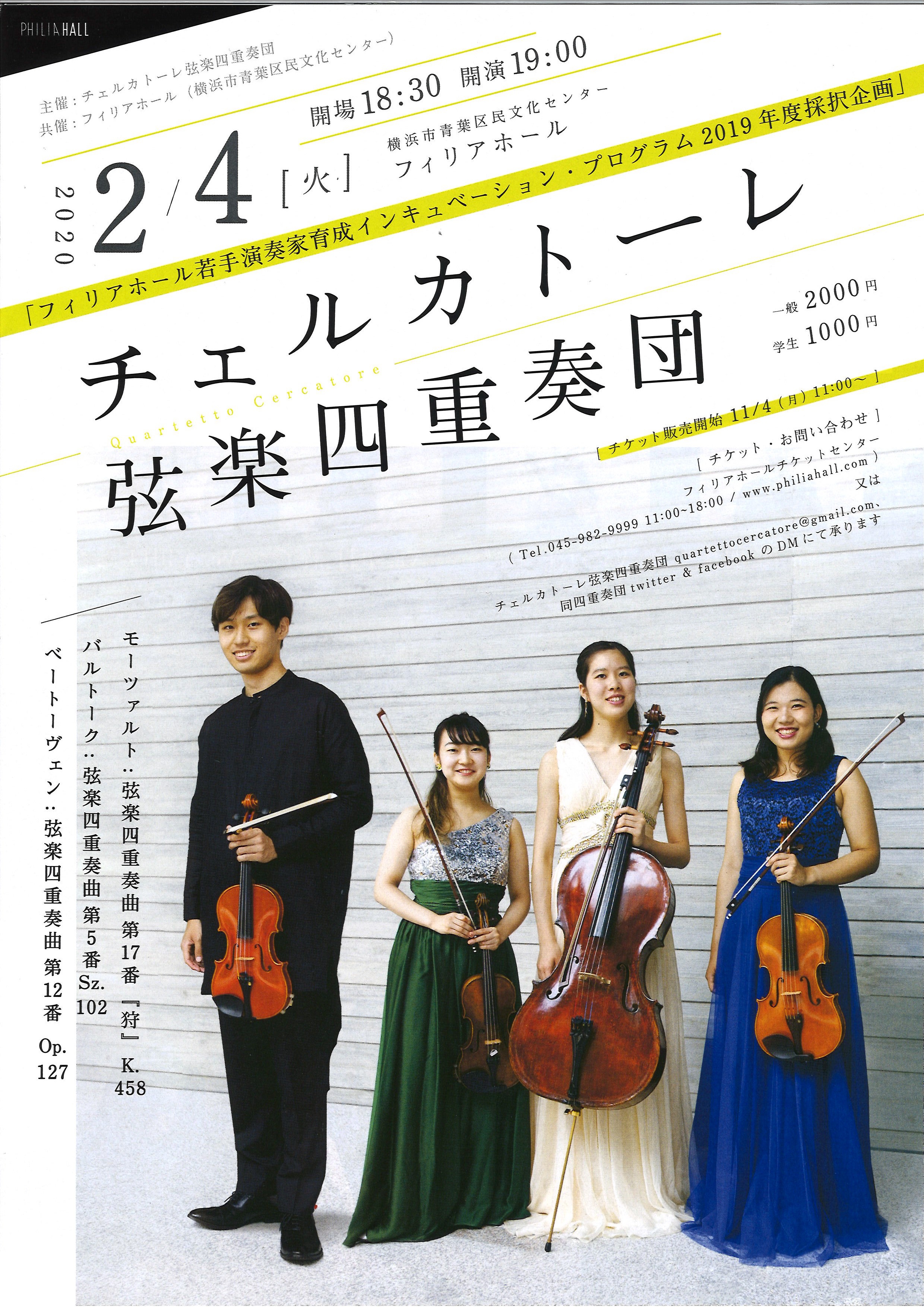 チェルカトーレ弦楽四重奏団 フィリアホール(横浜市青葉区民文化センター)で2月4日(火)に公演開催