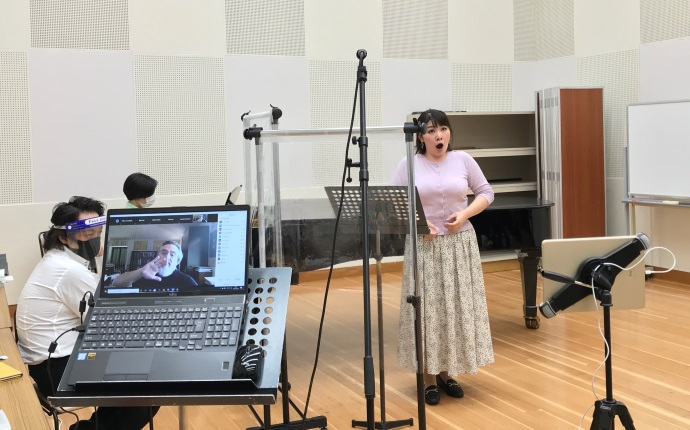 6月には感染症拡大防止のためのガイドラインを策定し、天羽明惠・野田ヒロ子(ソプラノ)、櫻田亮・今尾滋(テノール)、増原英也(バリトン)、古藤田みゆき(ピアノ)らコーチング・ファカルティによる対面レッスンを再開しました。受講生からは「ほかの多くのところではまだ実際のレッスンが開始されていない時期に、対面でのレッスンやピアニストとの合わせができるのはとてもありがたい」「ファカルティの先生方にナマのリアクションをいただいて、自分もすぐに反応できる。レッスンの大切さを改めて実感した」などの感想が聞かれました。